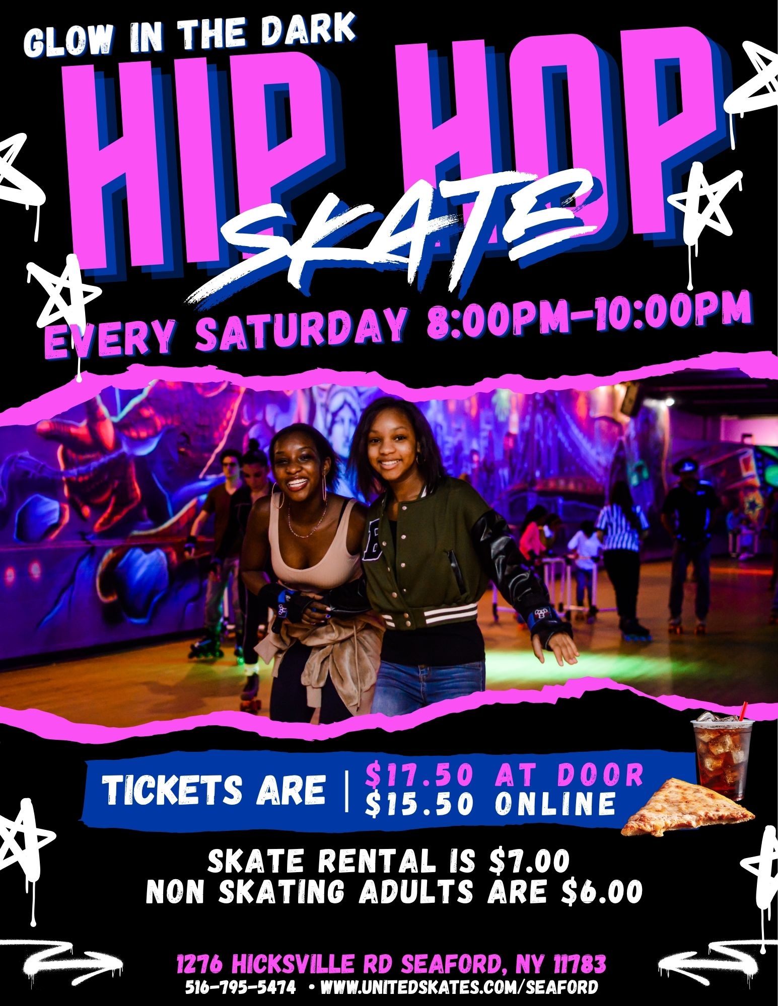 Cheap Skate Admission is $10 at the door/ $8.00 online Skate Rental is $7 Non Skating Adults are $6 Click Here for Tickets