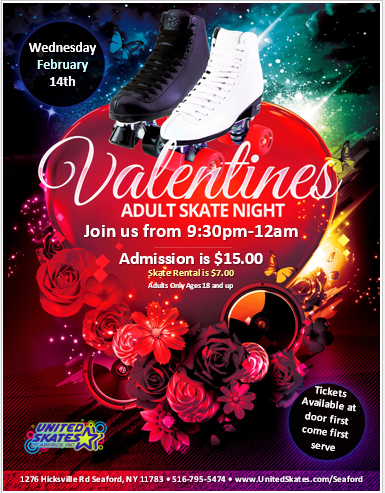 Adult Night Skate Must be over the age of 18 Admission is $15 Skate Rental is $7 Please Fill out your waiver prior to arrival Click Here for Waiver
