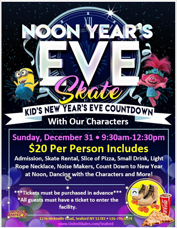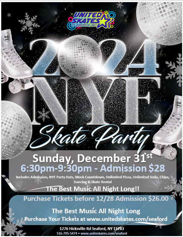Roll out of bed and head on over to United Skates to start off 2024 with a fun filled day of family Fun! Tickets must be purchased in advance Click Here for Tickets
