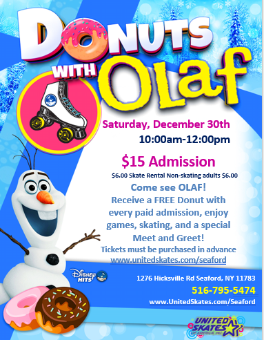 Come join us for a fun-filled morning at the United Skates of America Roller Skating Center! Bring your family and friends to meet and greet Olaf, the lovable snowman from Frozen. This in-person event is the perfect opportunity to enjoy delicious donuts and spend quality time with your favorite frosty friend. Don't forget to bring […]