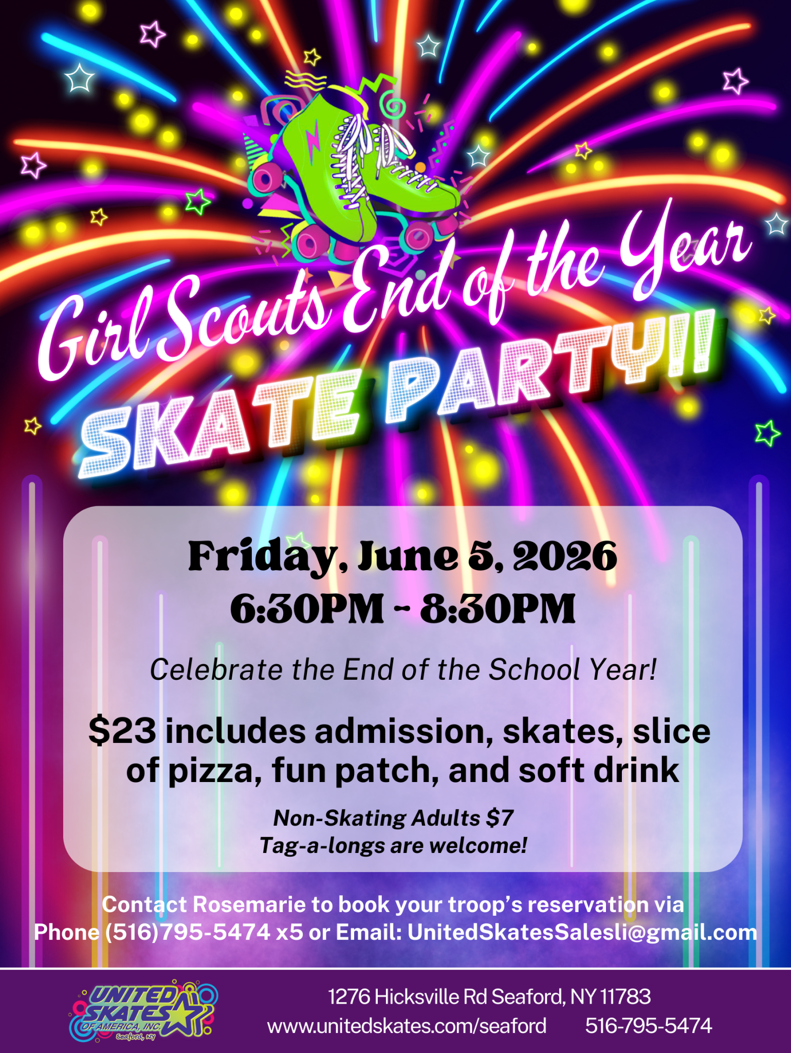 Celebrate the End of the Year with your Girl Scouts! – Friday, June 5, 2026 from 6:30PM – 8:30PM! $23 Includes admission, skates, slice of pizza, drink, and fun patch. […]