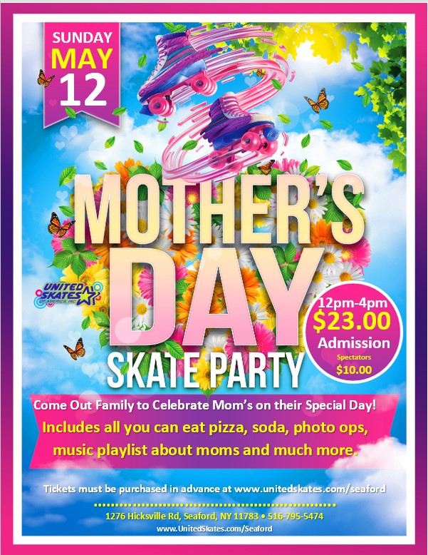 Come celebrate mom at this special skating event! $23 admission skate rental Included $10 non skating adults Tickets must be purchased in advance Click Here for Tickets Click Here for the Waiver