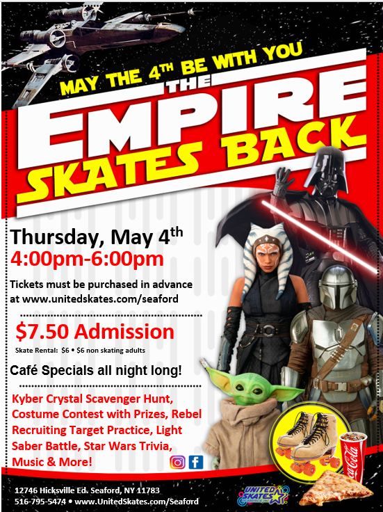 May the 4th Be with You – Star Wars Skate May 4 May the 4th Be with You – Star Wars Skate 4:00 pm - 6:00 pm