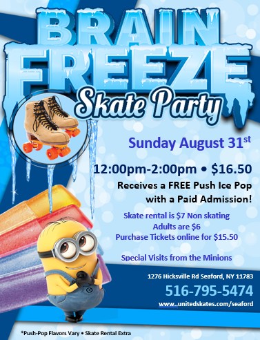 United Skates Of America Seaford 1276 Hicksville Rd., Seaford, NY🍌🧊 BRAIN FREEZE SKATE WITH THE MINIONS! 🧊🍌 🗓 Saturday, August 31st ⏰ 12–2 PM 📍 United Skates of America Get ready to giggle, glide, and chill—Minion-style! 💛 Meet your favorite banana-loving buddies 🛼 Skate into silliness and smiles 🍧 FREE ice pop with each full-price admission (yum!) 🎟 Admission: 💻 $15.50 Online 🚪 $16.50 […]