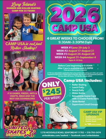 Roll into Summer at Skate Camp! Four great weeks to choose from! Our camp counselors and kids aged 4-14 will have their days full of skating, arcade play, games, lunch, snack, and craft activities.