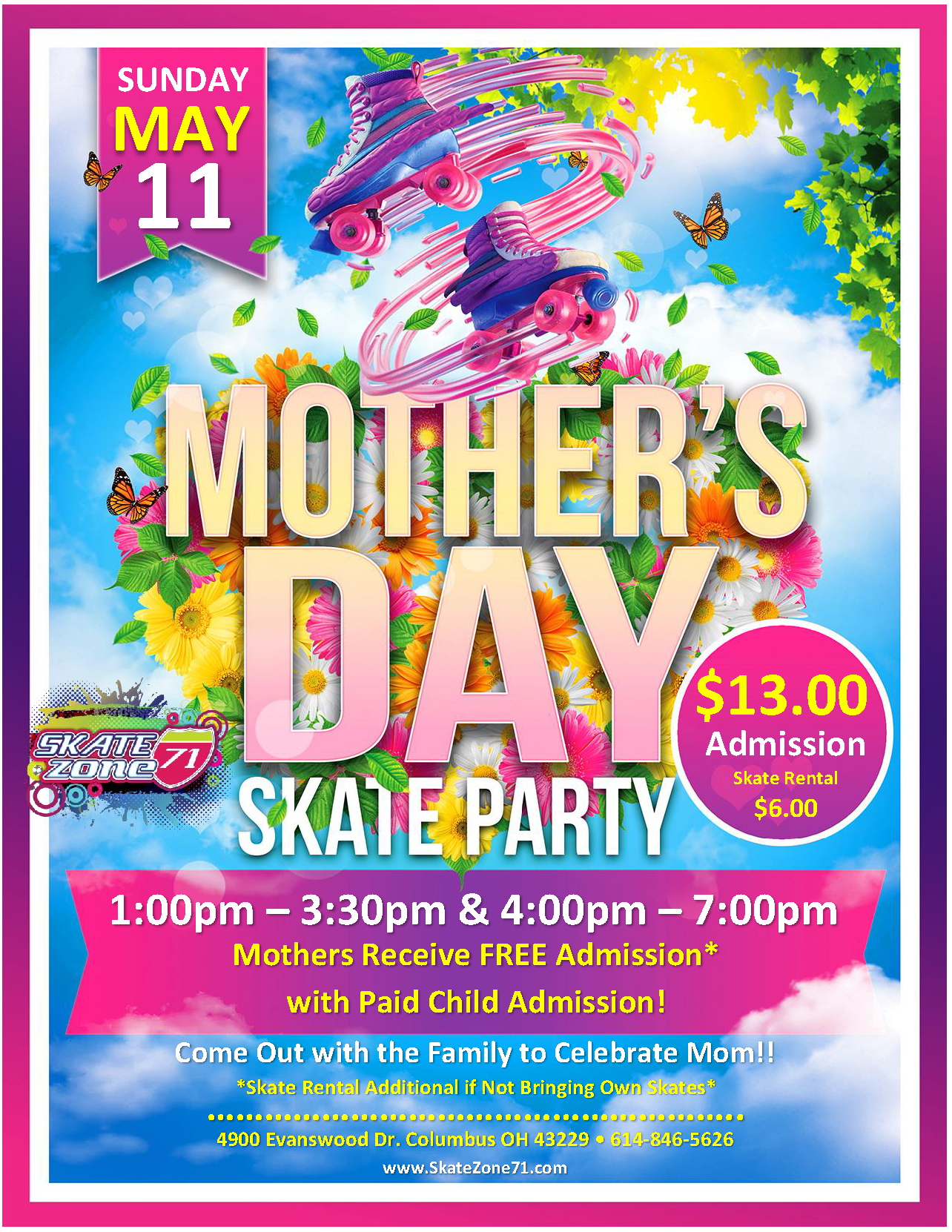 Celebrate Motherās Day on Wheels! Trade the flowers for fun and bring Mom to Skate Zone 71!