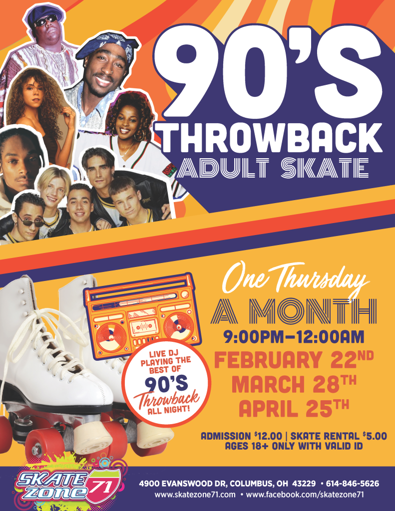 One Thursday a Month – Head to Skate Zone 71 for a 90’s JAM SKATE!