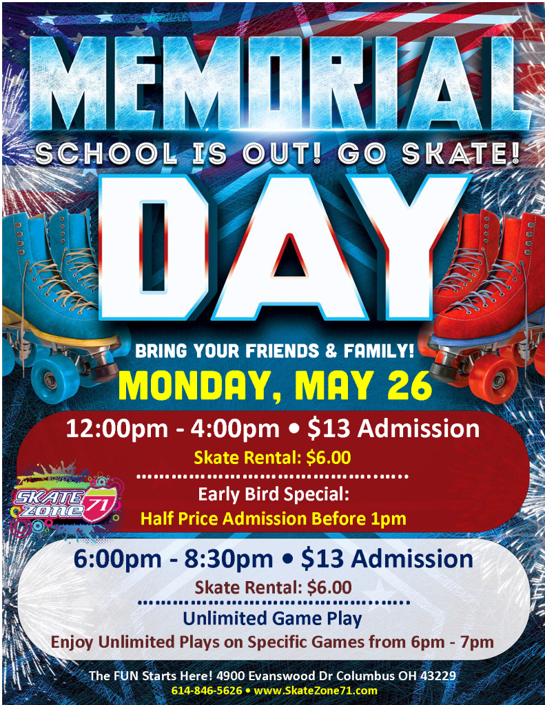 - All guests ages 3-17 must pay admission & skate rental (or bring their own skates).