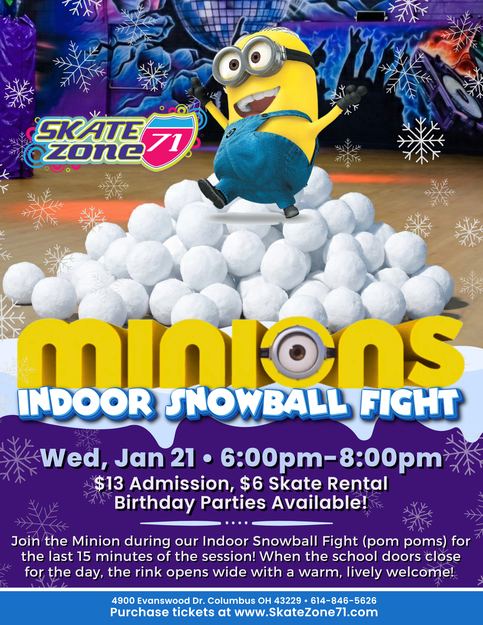 We’ll have the Minion out for DJ Games & an Indoor Snowball Fight at the end of session!!