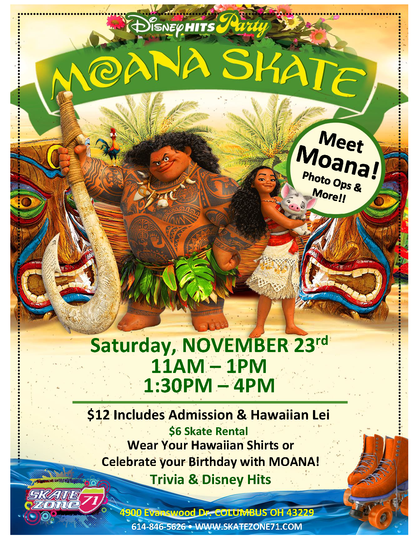 MOANA is taking over Two Skating Sessions so stop in for Photo Ops, Games & Skating!