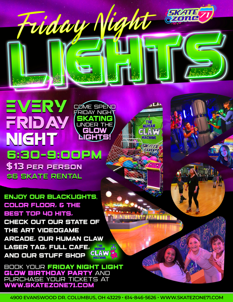 Join us every Friday for FUN GLOW Skating, TOP HITS, Arcade Games, Laser Tag & MORE!