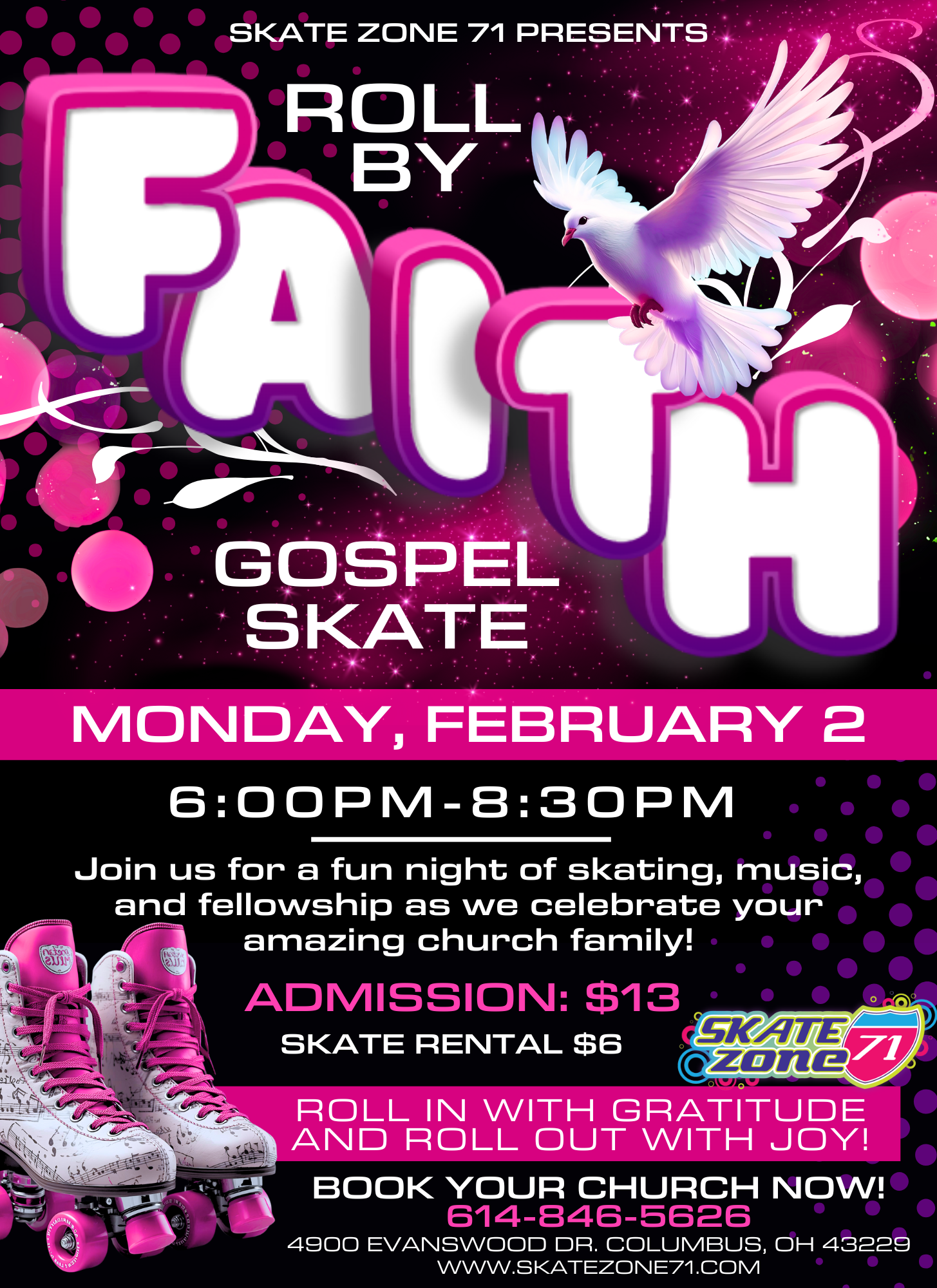 Join us for a fun night full of Gospel/Christian music, lights, and nonstop skating joy.