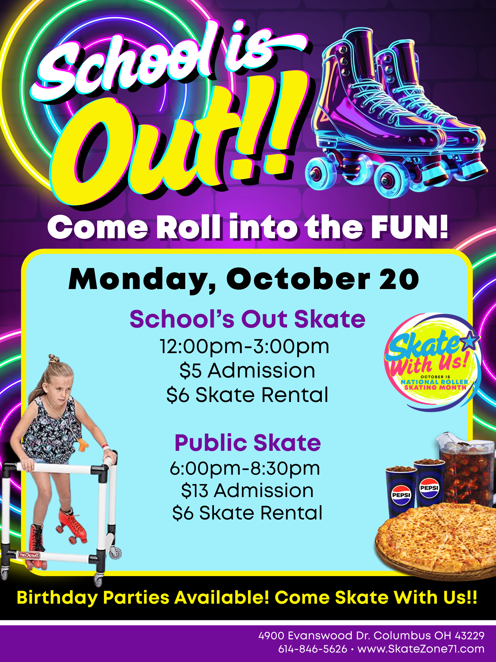 No School – Come Skate With Us!! We’ve got a daytime session for everyone that needs something fun to do while school is out!