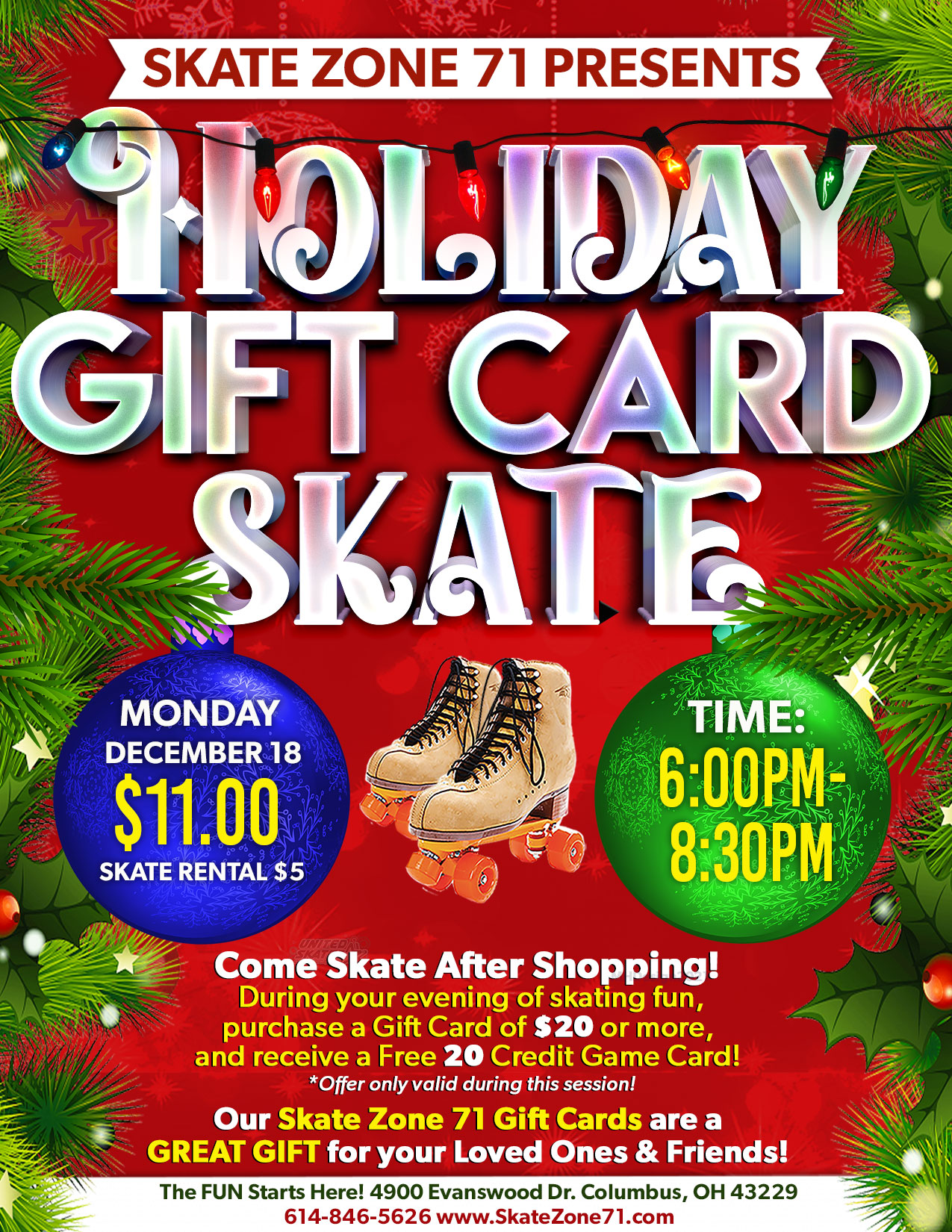 🏈Pre-Game with us at Skate Zone 71, wear your OHIO STATE attire and receive $2 Off Admission!!🏈 11:00AM - 1:00PM $11 Admission ($9 with OSU Gear) $5 Skate Rental $3 Laser Tag Games!! BIRTHDAY PARTIES AVAILABLE – CLICK HERE GROUP RATES AVAILABLE FOR PARTIES OF 15+ – CLICK HERE ALL CHILDREN AGES 3-17 MUST PAY […]