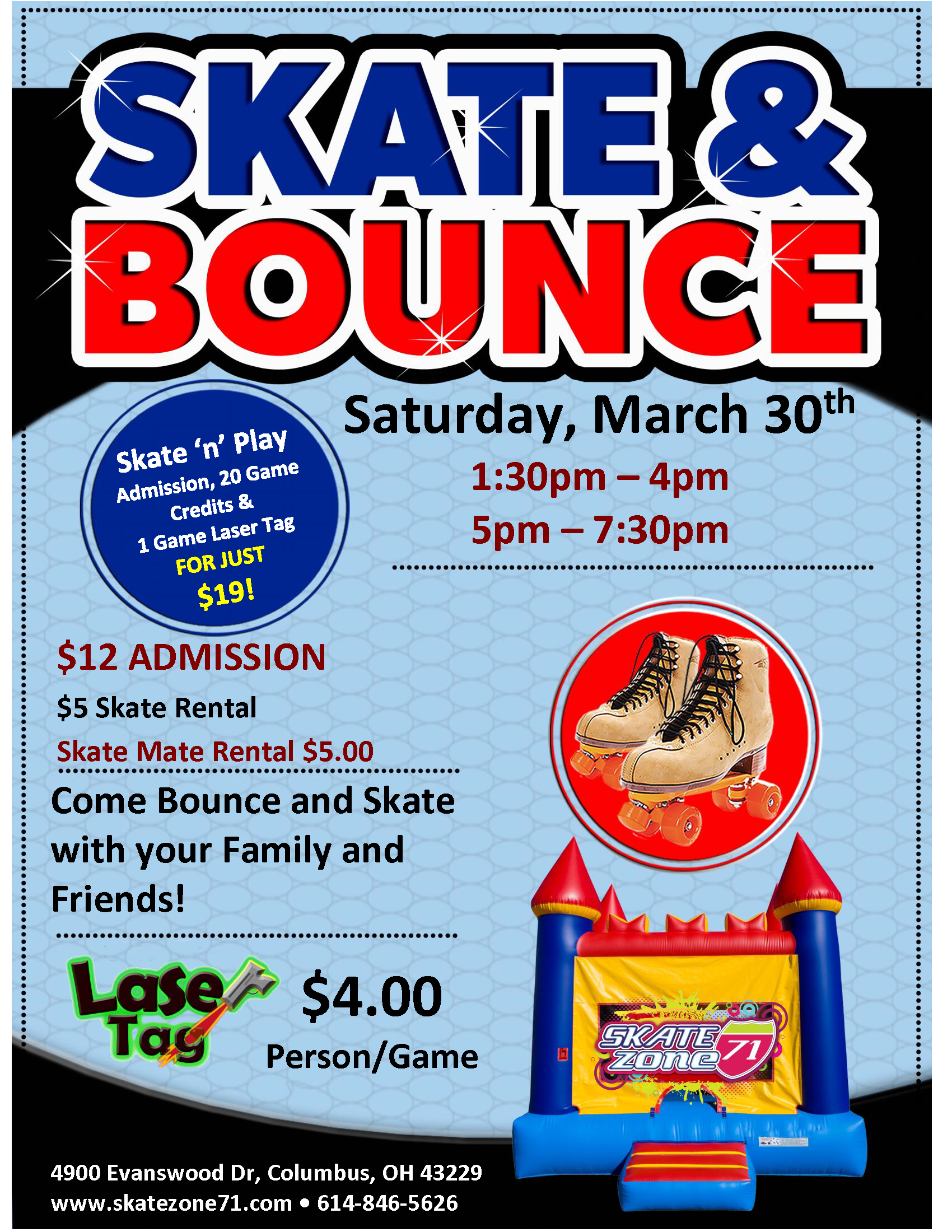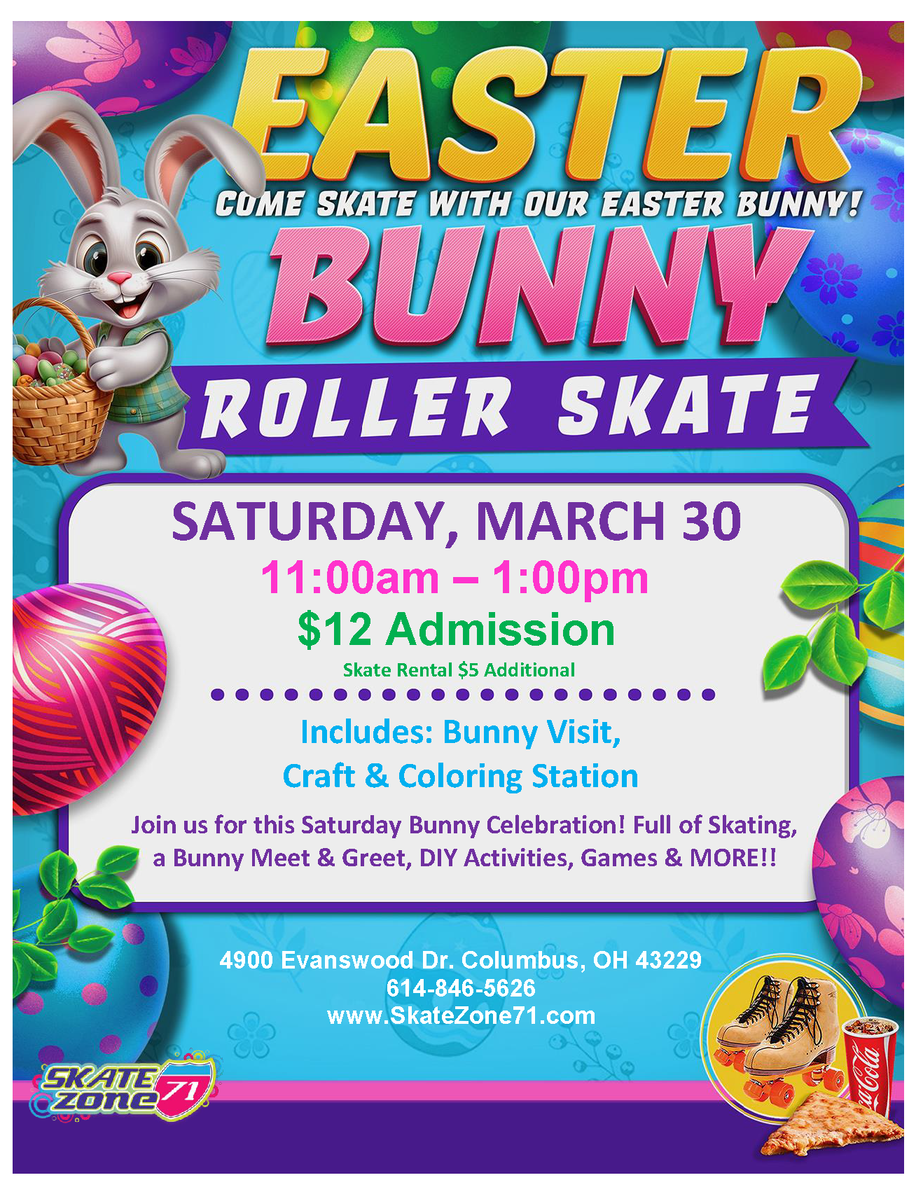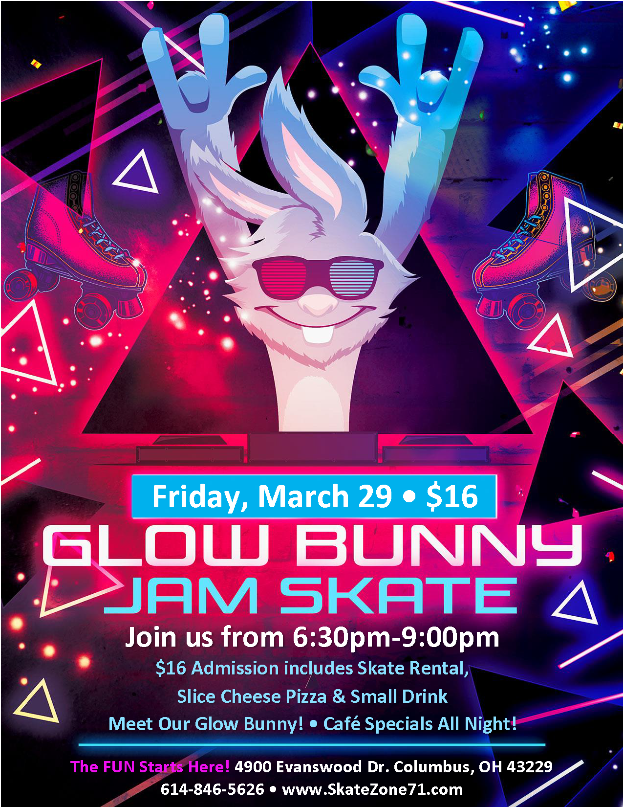 🌟 It's a HOLIDAY GLOW SKATE at Skate Zone 71 🌟 Special Visit from our Glow Bunny with Laser Tag, Games, Cafe Specials & MORE! 6:30PM – 9:00PM $16 Admission includes Skate Rental, One Slice Cheese Pizza & Small Drink PURCHASE TICKETS HERE! ALL CHILDREN AGES 3-17 MUST PAY ADMISSION & ROLLER SKATE RENTAL (OR […]