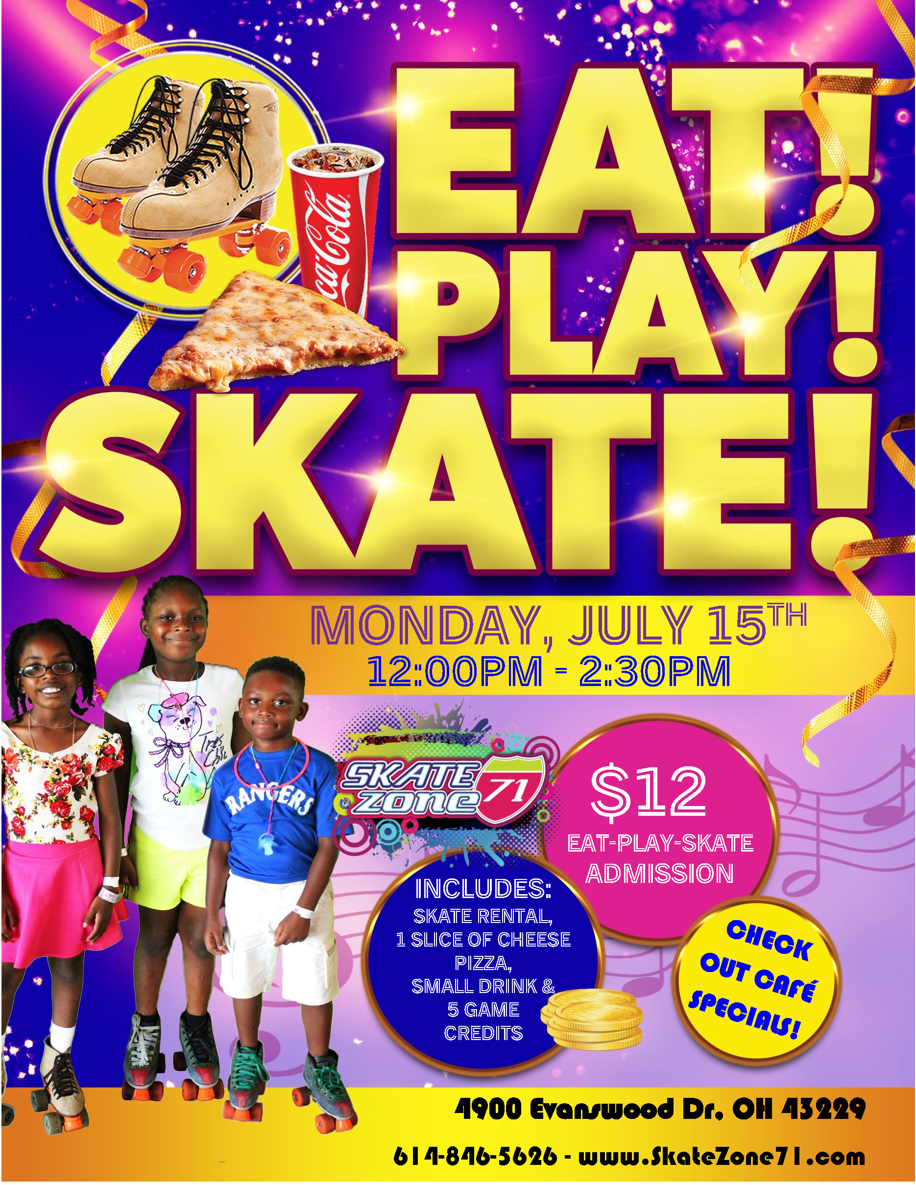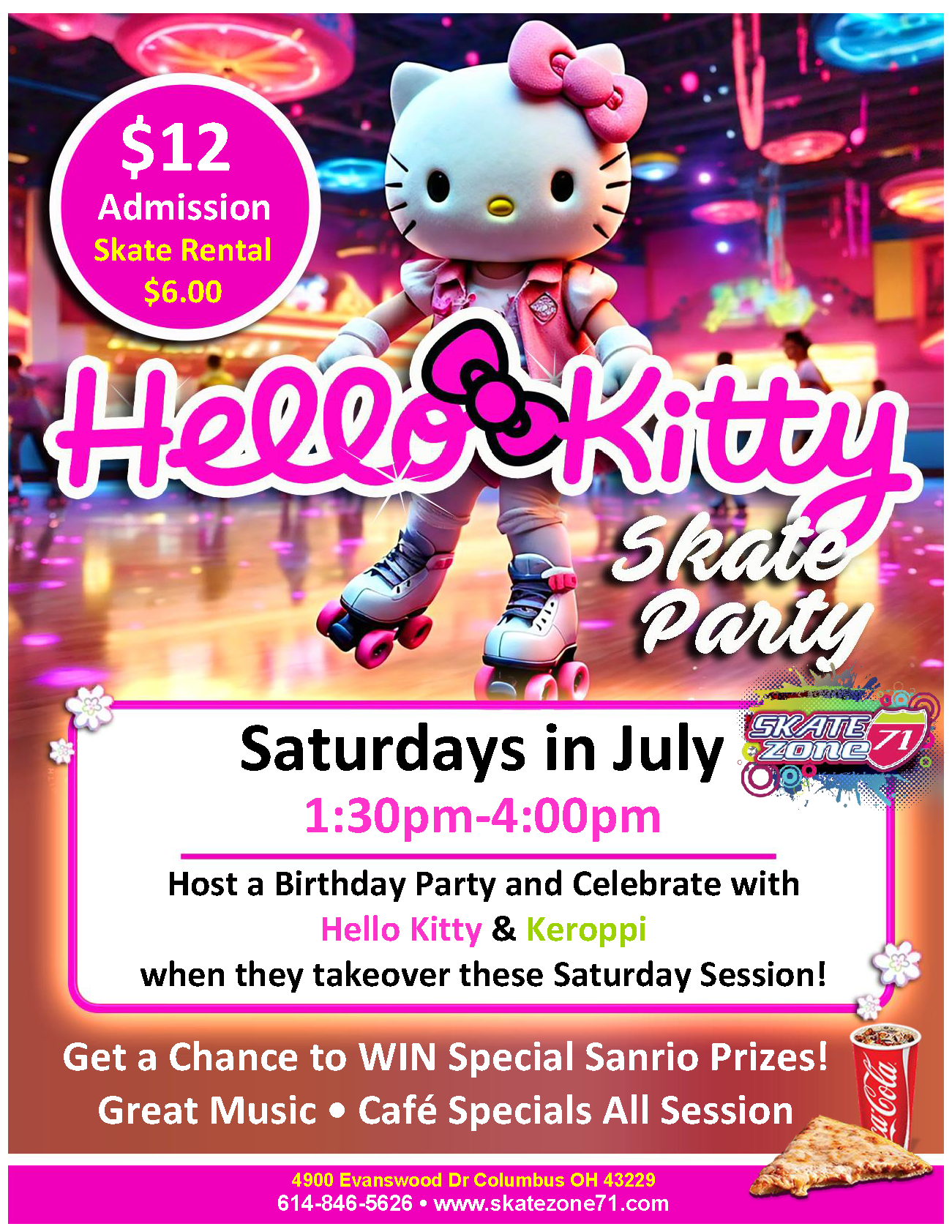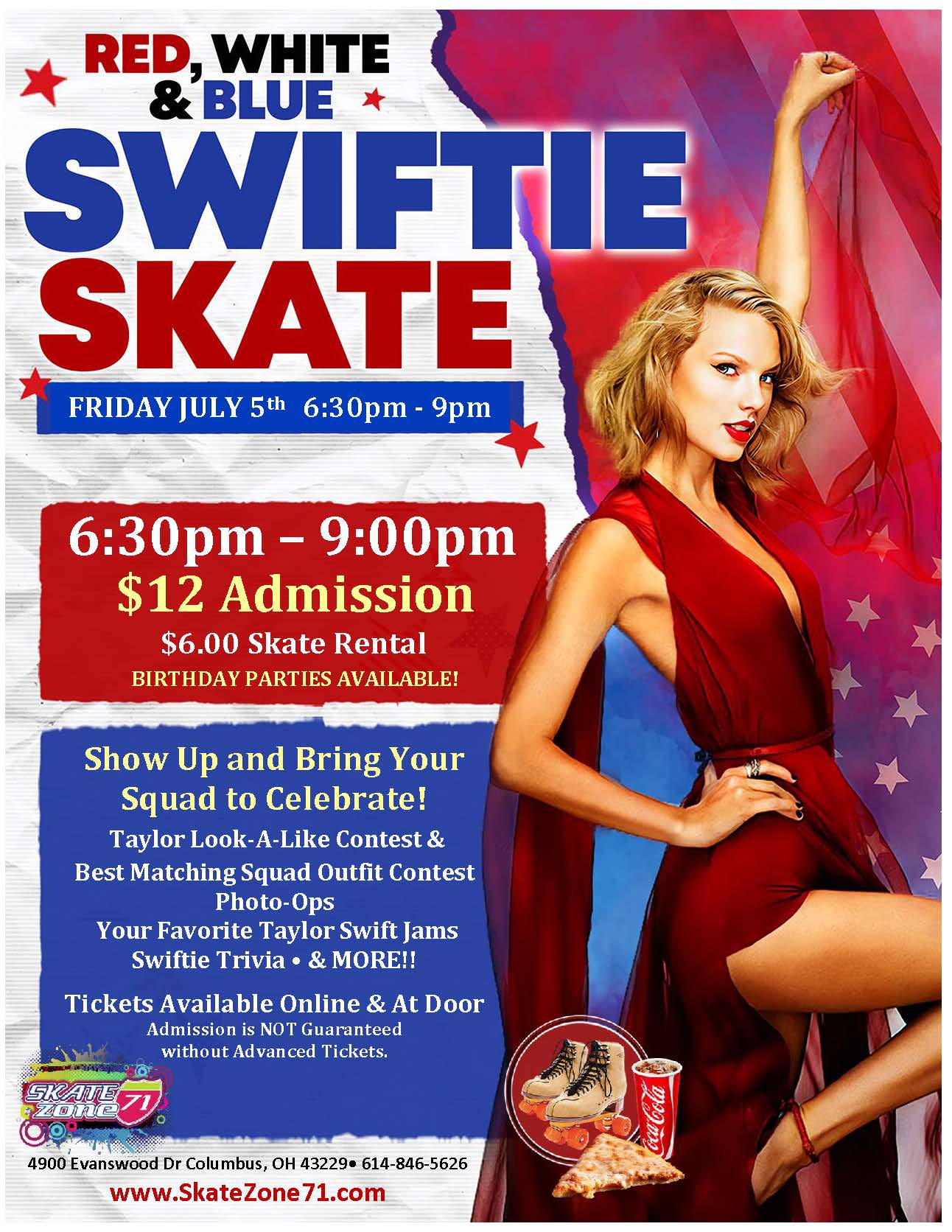 $12.00 Admission - each Admission earns one Raffle Ticket for $100 Visa Gift Card (2 Winners) $6.00 Roller Skate Rental PURCHASE TICKETS HERE! Adult Skates are for ages 18+ and over ONLY All guests are required to pay admission All Adult Skaters (18+) are required to sign a liability waiver