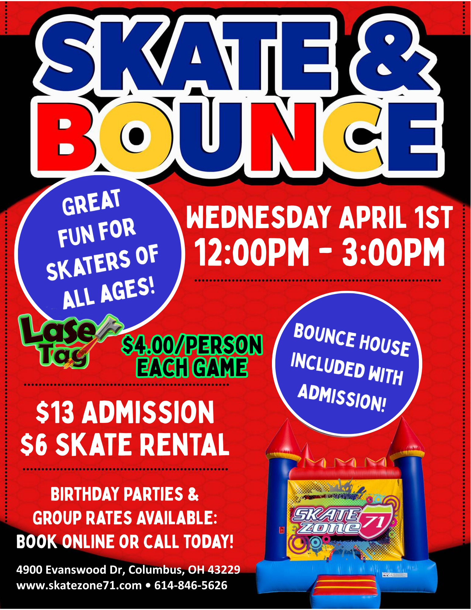 Spring Break TUESDAYS at Skate Zone 71 FAMILY TOP 40/POP 12:00PM – 3:00PM Admission: 2 for $12 Admissions/1 for $7 Admission Skate Rental: $6.00 ⏰ Session Times: Begin and end at […]