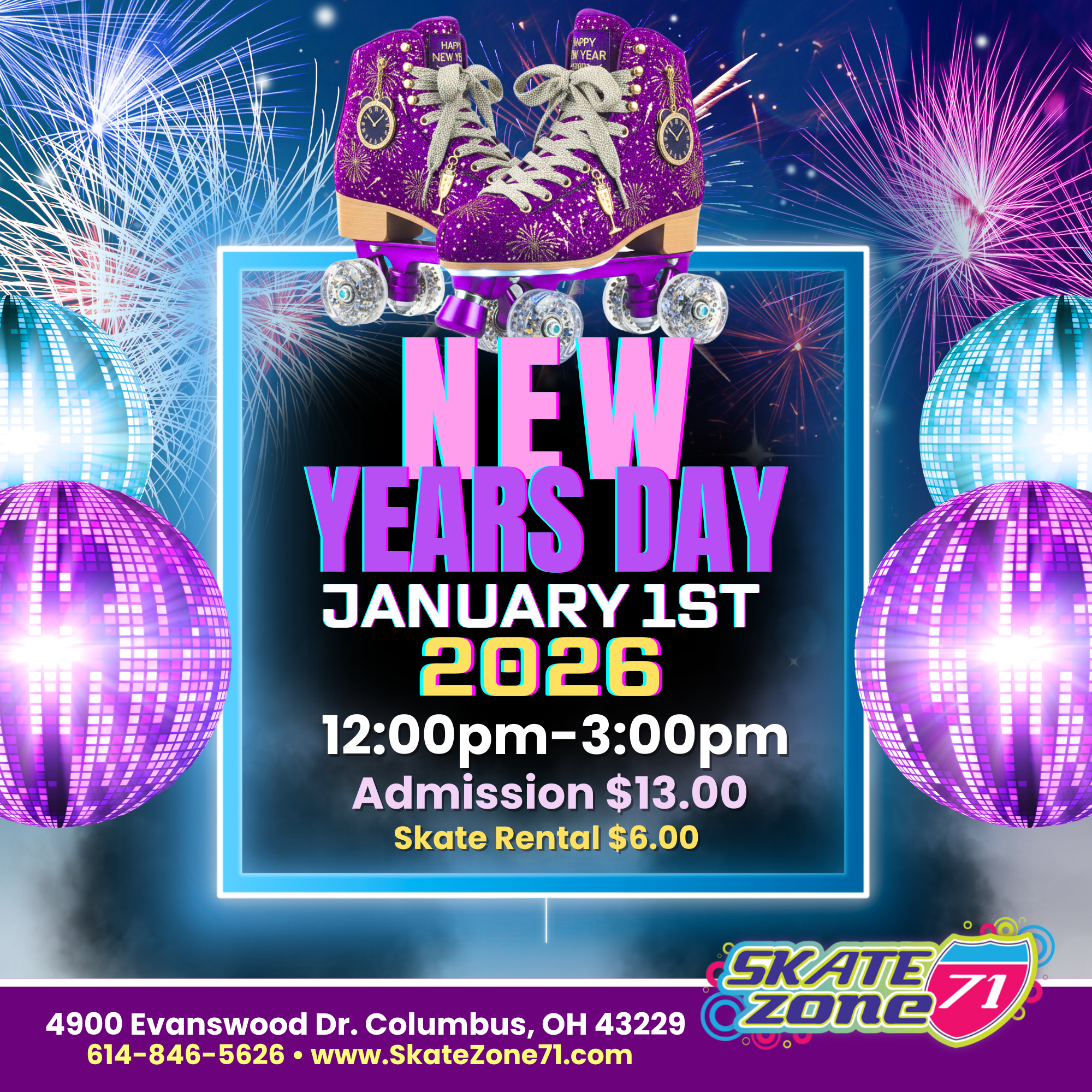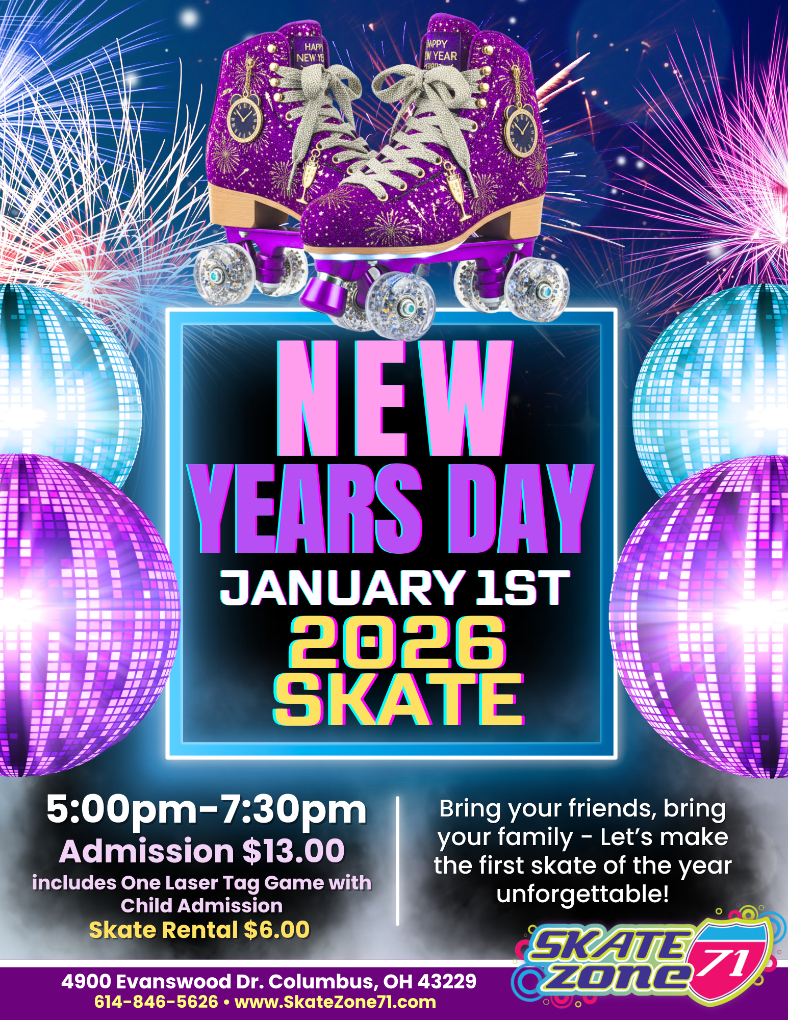 New Years Day Public Skate Thursday January 1st | 5:00 PM – 7:30 PM Start the year moving and grooving on wheels! Bring your friends, shake off 2025, and roll into a fun fresh start. Perfect for families, kids, and anyone ready to start the year with FUN. Lace up and let’s roll into the […]