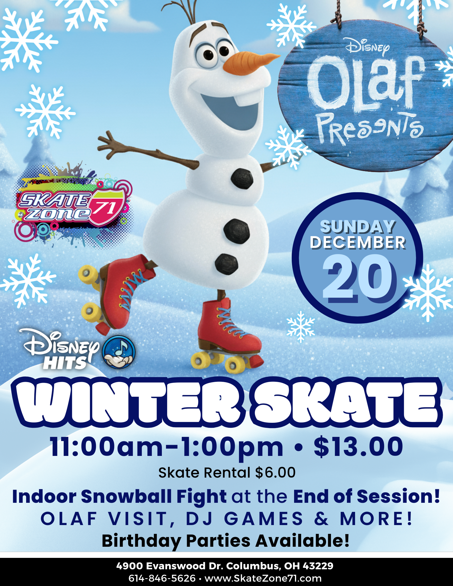 Merry Stitchmas Skate Sunday December 21st | 1:00 PM – 3:30 PM Stitch is trading his surfboard for skates! Join us for a cool winter adventure full of snowflakes, smiles, and skating fun! Admission: $13.00Skate Rental: $6.00 PURCHASE TICKETS HERE! BIRTHDAY PARTIES AVAILABLE! ⏰ Session Times: Begin and end at the posted start & end time—no stayovers allowed. […]