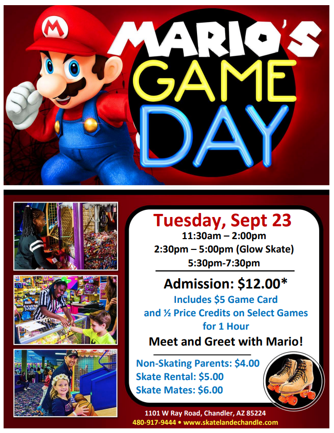 🍄🎮 Mario’s Game Day at Skateland Chandler! 🎮🍄