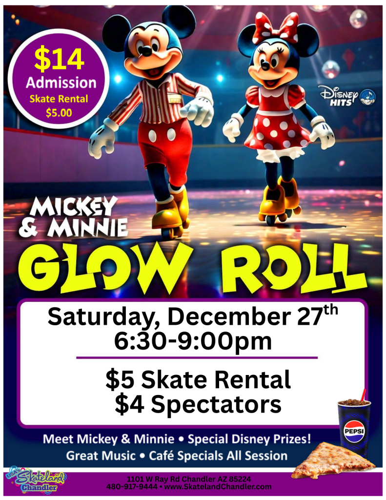 ๐๐ญ Mickey & Minnieโs Glow Roll at Skateland Chandler! ๐ญ๐