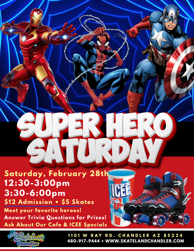 Donāt get left in the dust! Assemble your team and head to Skateland Chandler for the most heroic Saturday of the year. ā”š§¤