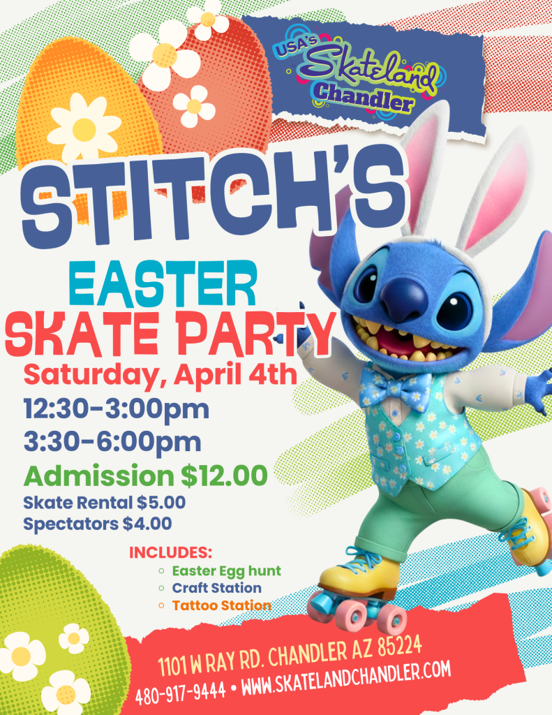 Don’t let your Easter weekend be “blue”—come party with Stitch at our massive Easter Skate Party! 🌺 This is the ultimate holiday bash, and you do not want to be the only one missing out on the egg-stravaganza!