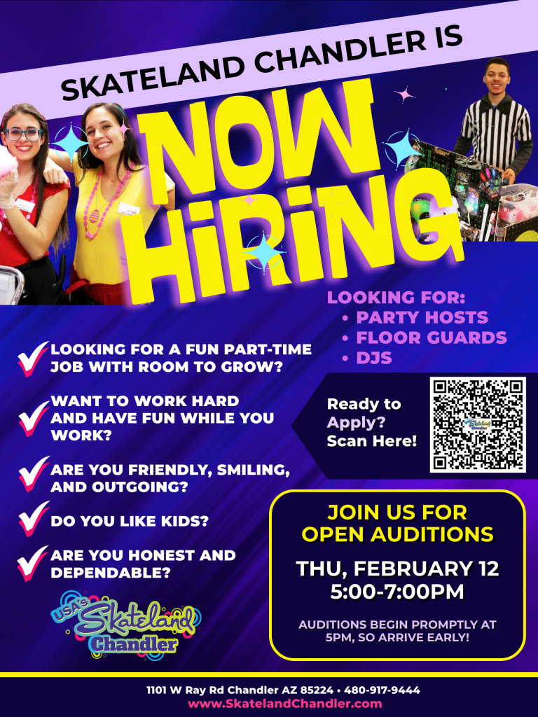 Ready to show us what you’ve got? Scan the QR code on the flyer or head to www.SkatelandChandler.com/employment to get started!