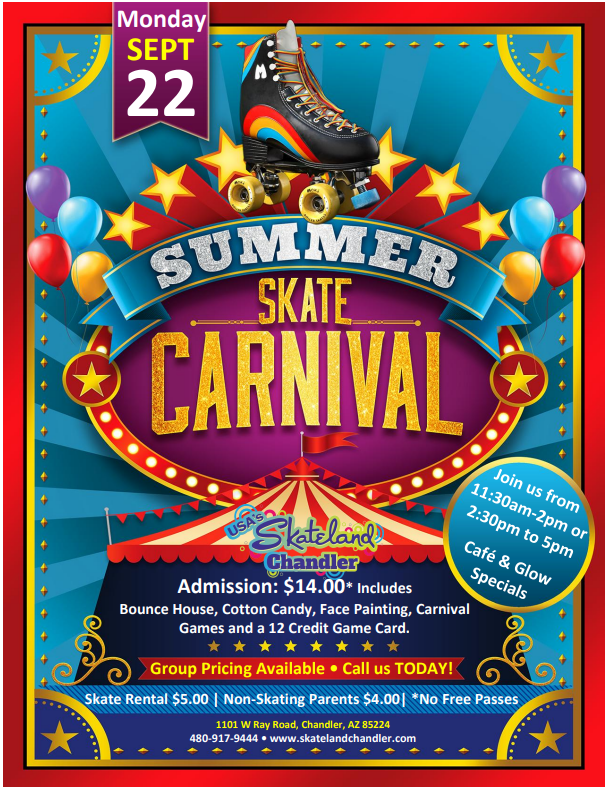 🎉 Kick Off Fall Break at Skateland Chandler’s Fall Break Kickoff Carnival! 🎉 Start your break with a full day of fun you won’t forget! Join us Monday, September 22nd […]