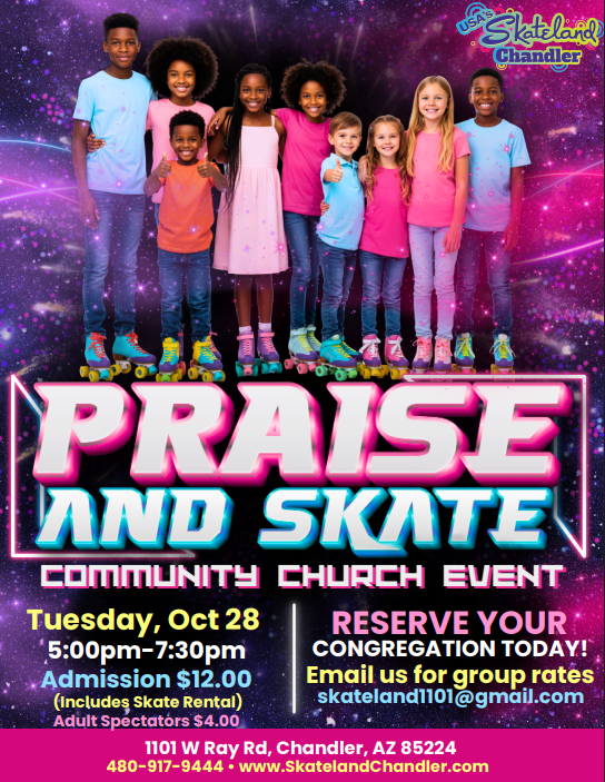 🙌✨ Praise & Skate — Community Church Event ✨🙌 Skateland Chandler • Tuesday, Oct 28 • 5:00pm–7:30pm Looking for a fun night out with your congregation? This is the place […]