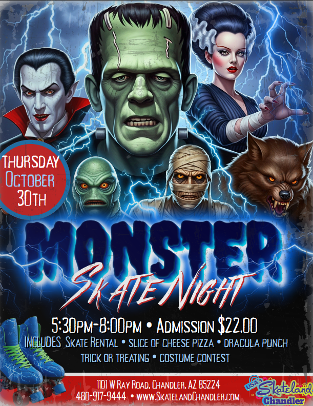 Get ready for a spine-tingling night of thrills on wheels — Monster Skate Night is coming to Skateland Chandler! 👻 Thursday, October 30th🕔 5:30pm – 8:00pm💀 Admission: $22.00 per person(Includes […]