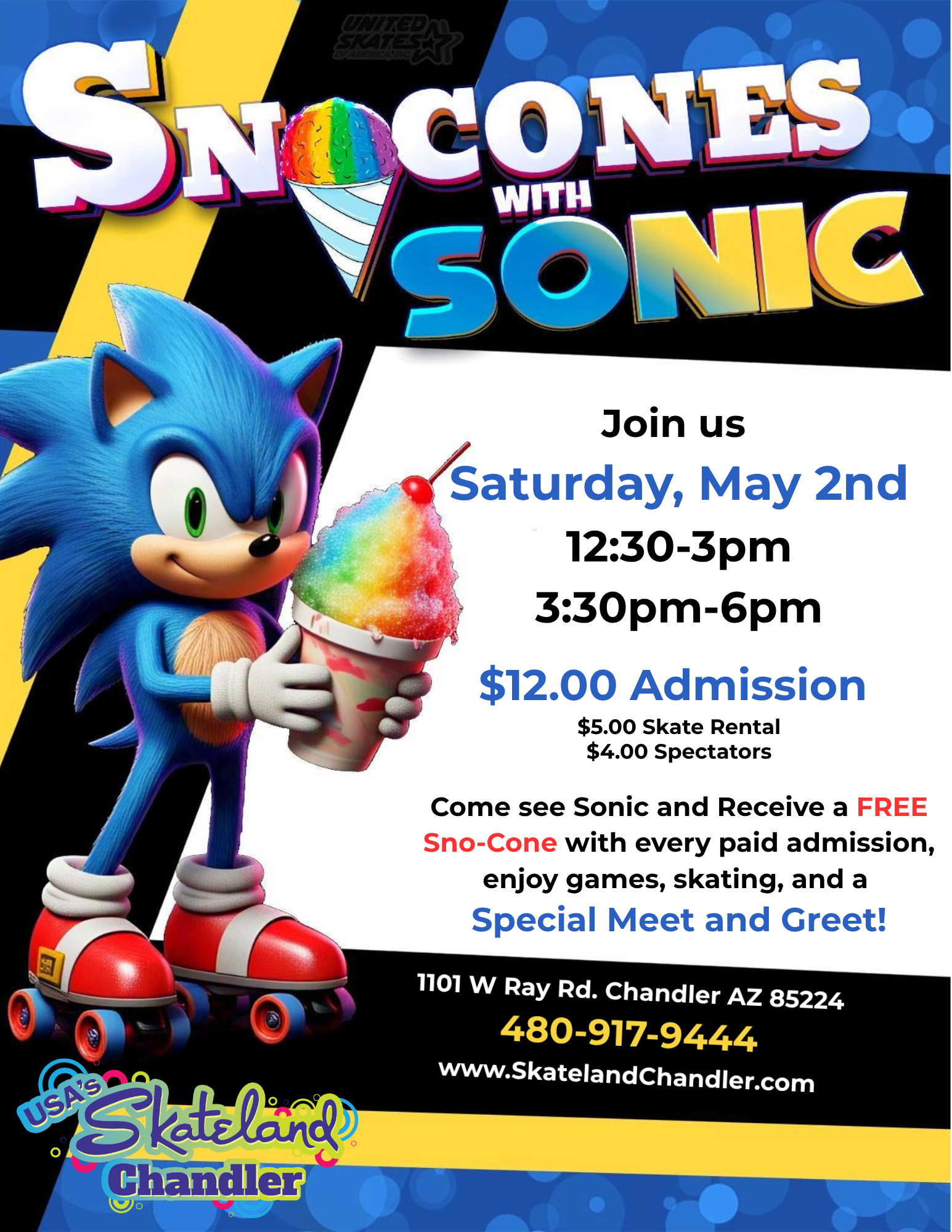 Get ready to speed over to Skateland Chandler for a legendary day with the Blue Blur himself! We are hosting a Sno-Cones with Sonic event that you won't want to miss. Whether you're a speedster on the floor or just starting out, come enjoy a day filled with skating, games, and a Special Meet and […]
