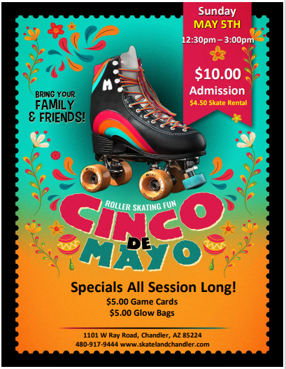 Sunday, May 5 12:30pm - 3:00pm $10 Admission $4.50 Skate Rental ✨ Come Roller Skate with us here at Skateland Chandler!!✨ Top 40 Hits - Latin Pop - Music all session long BIRTHDAY PARTIES AVAILABLE! ALL CHILDREN AGES 2-17 MUST PAY ADMISSION & ROLLER SKATE RENTAL (OR BRING THEIR OWN SKATES) NON-SKATING ADULTS MAY ENTER […]