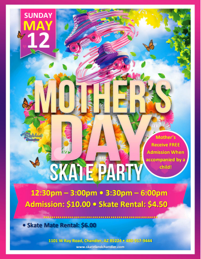 Join us this Mother's Day for a wonderful skating session. All Mom's Skate for FREE with FREE admission (Skate Rental extra) Sunday, May 12, 2024 12:30pm - 3:00pm $10 Admission $4.50 Skate Rental ✨ Come celebrate MOM with us here at Skateland Chandler!!✨ Top 40 Hits! BIRTHDAY PARTIES AVAILABLE! ALL CHILDREN AGES 2-17 MUST PAY […]