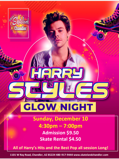 Come skate to the best of Harry Styles Sunday, December 10 4;30pm - 7:00pm Admission: $9.50 Skate Rental: $4.50