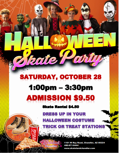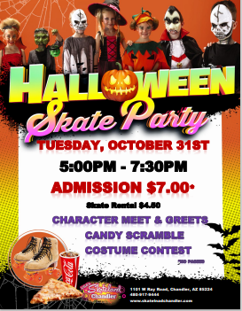 Happy Halloween. Are you looking for fun place for the kids this Halloween? Skateland, Chandler will be open for a Halloween Skate, we will have lots of meet and greets with our costume characters, a Candy Scramble for the kids, Costume contest and more. Tuesday, October 31, 2023 5:00pm - 7:30pm Admission: $7.00* Skate Rental: […]