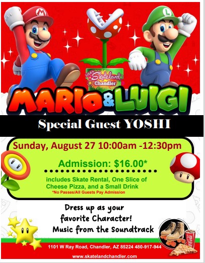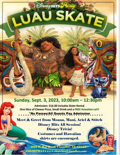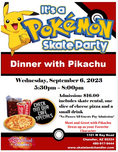 $15.00 Admission - includes all you can eat cheese pizza $4.50 Skate Rental ✨ Come enjoy some pizza and skate with us here at Skateland Chandler!!✨ Top 40 Hits! BIRTHDAY PARTIES AVAILABLE! NO PASSES ALL GUESTS MUST PAY ADMISSION & ROLLER SKATE RENTAL (OR BRING THEIR OWN SKATES) ALL ADULT SKATERS (18+) ARE REQUIRED TO […]