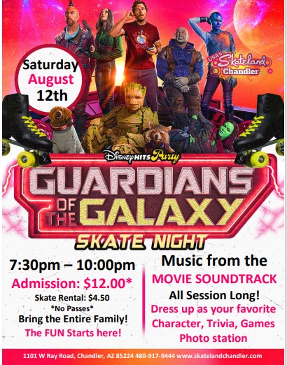Saturday, August 12, 2023 7:30pm - 10:00pm Admission: $12.00 Skate Rental: $4.50 We will be playing music from the soundtracks