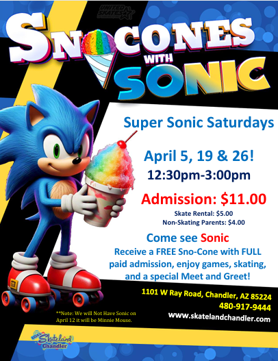 Join Us for Sno-Cones & Skating Fun with Minnie! 🛼🍧 Get ready for a magical afternoon at USA’s Skateland Chandler on Saturday, April 12th! Bring your family and friends to enjoy skating, sweet treats, and a delightful meet-and-greet with Minnie Mouse. 🌟 Event Highlights: Event Time: 3:30 PM – 6:00 PM Admission Details: Admission: $11.00 | FREE Sno Cone included with full […]