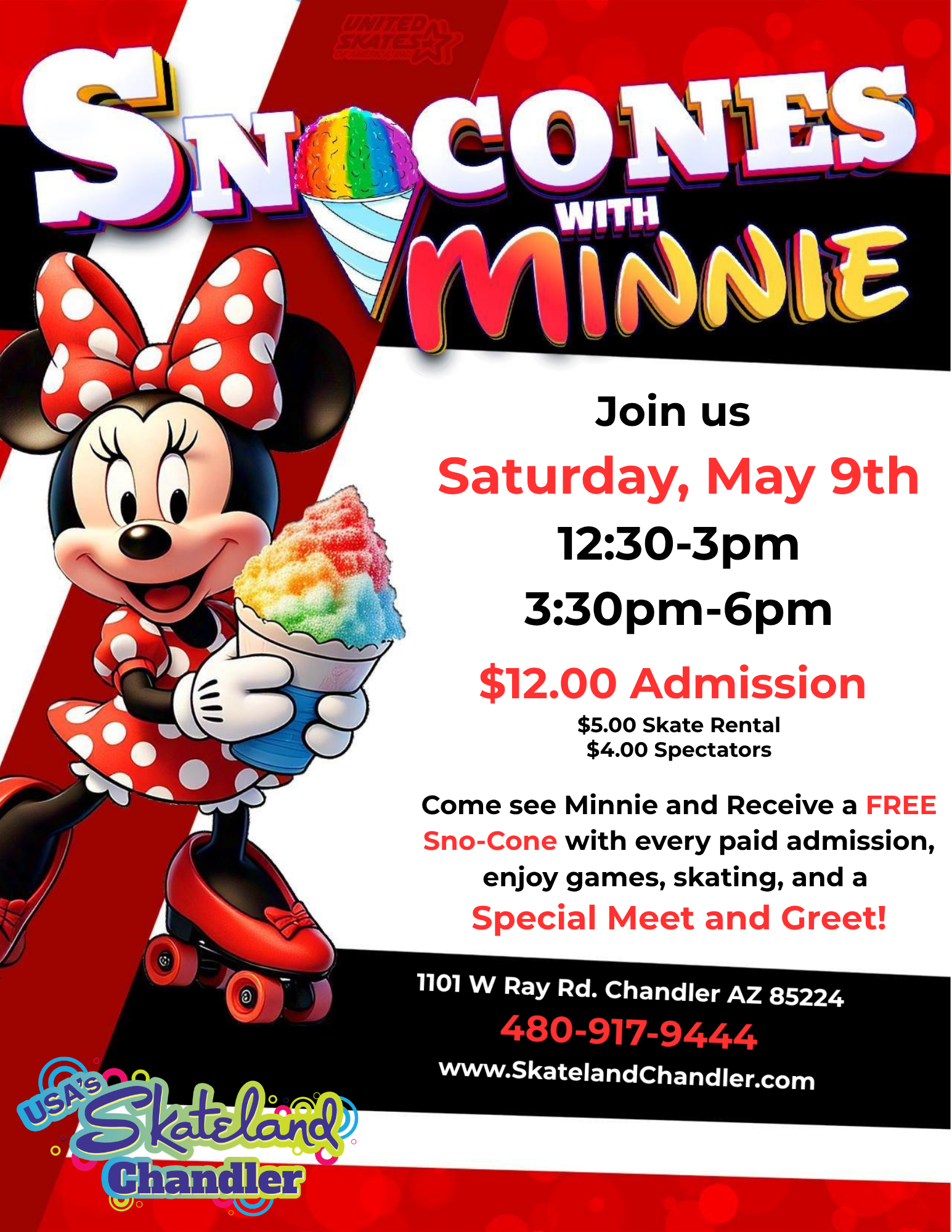 Get ready for a sweet Saturday filled with skating, smiles, and sno-cones! We are hosting a Special Meet & Greet with Minnie on Saturday, May 9th, and you’re invited to […]