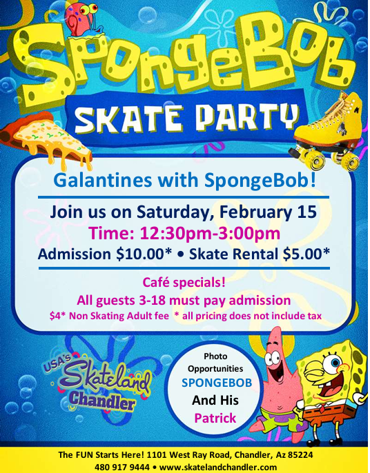 🌟 Galentine's Day with SpongeBob & Patrick! 🌟 💛 Join SpongeBob and his friends for an unforgettable day of fun! 📅 Date: Saturday , February 15 ⏰ Time: 12:30 PM - 3:00 PM 🎟 Admission: $10.00* 🛼 Skate Rental: $5.00* 👥 Non-Skating Adults: $4.00* ✨ Event Highlights: 📸 Photo Opportunities with SpongeBob & Patrick! 🍔 […]