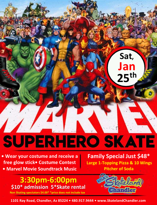 Join us for a fun-filled Saturday afternoon at Skateland Chandler from 12:30 PM – 3:00 PM! Get your skates on and groove to the best Top 40 hits. Perfect for friends, family, and anyone looking to enjoy a great time on wheels! 📍 Location: 1101 West Ray Blvd, Chandler, AZ 85224 📞 Contact: 480-917-9444 🎉 Admission: $11 🛼 Skate Rental: […]