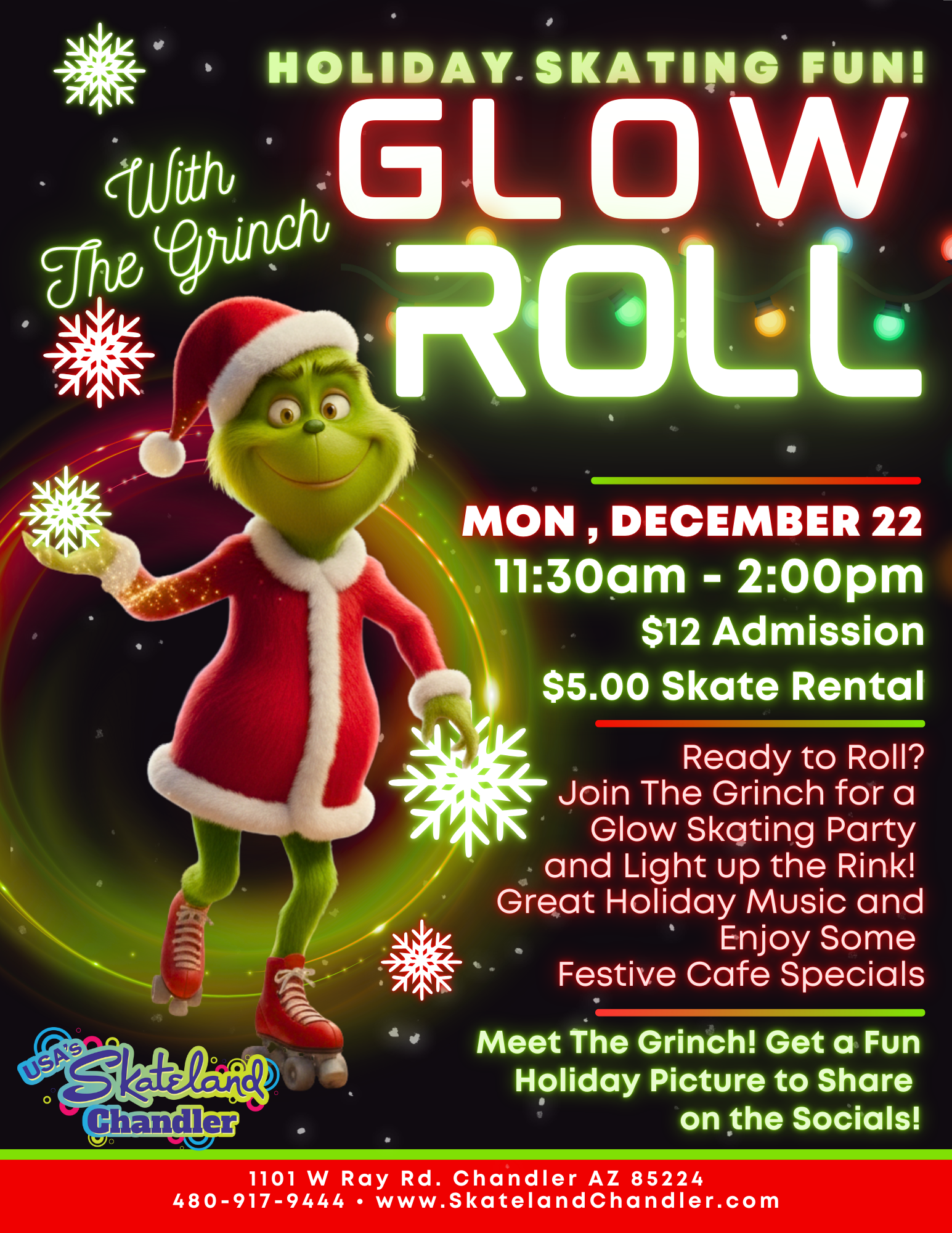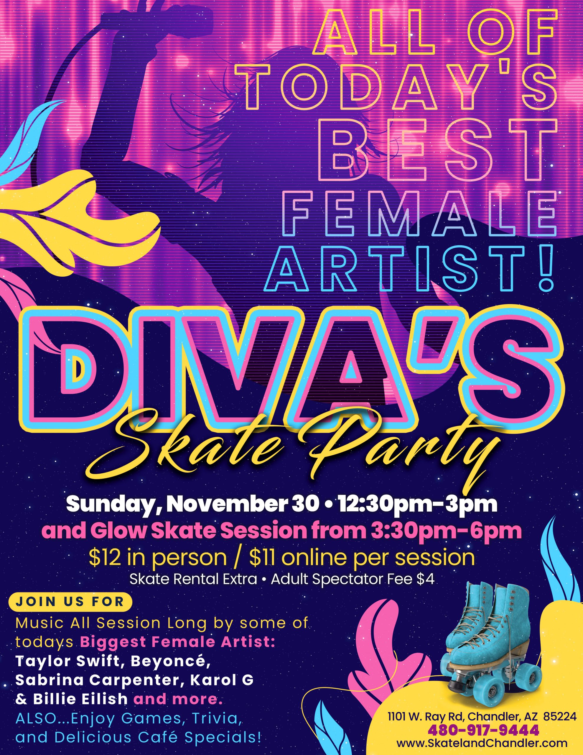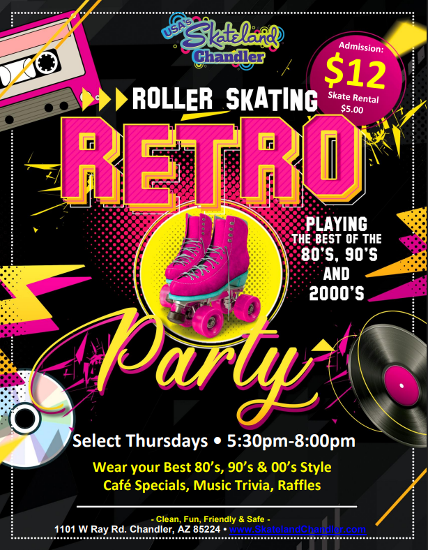 School’s out — let the Thanksgiving fun begin at Skateland Chandler! From Wednesday, November 26th through Sunday, November 30th, we’re rolling into the holidays with themed skate sessions for everyone. Enjoy family favorites like K-Pop Demon Hunters Glow Skate, Stitch Free Dinner Night, Grinch Little Rollers, Pop Diva Glow Skate, and even Black Friday Skate […]