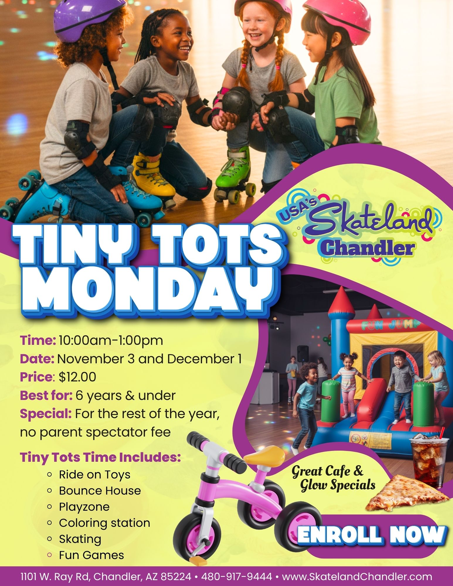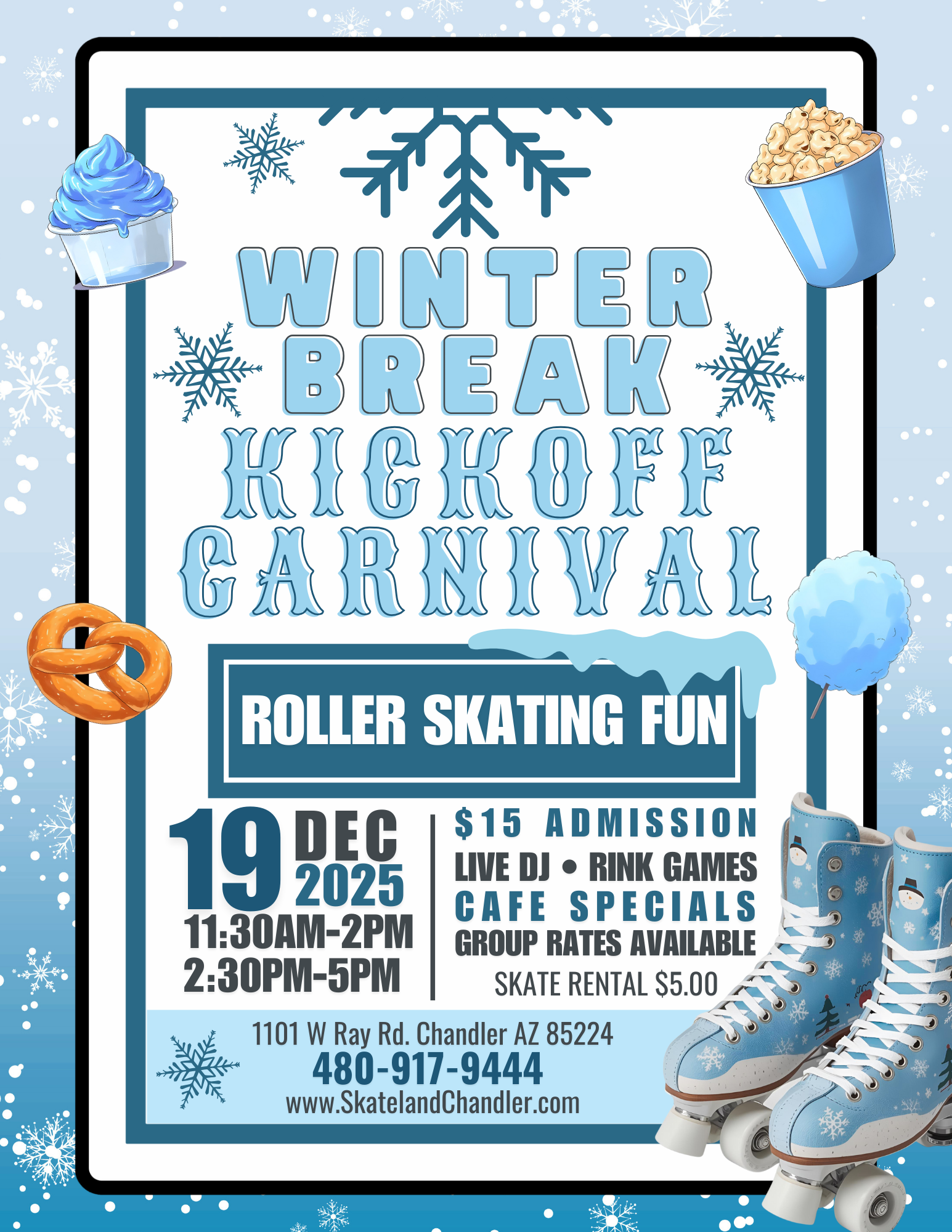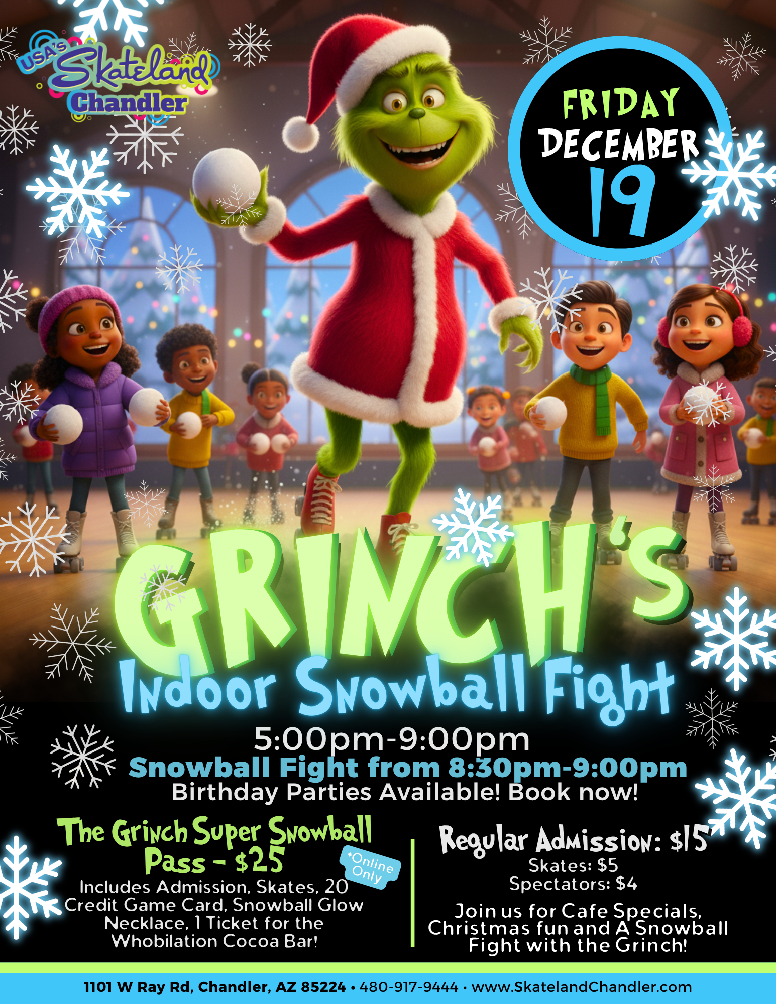School’s out — let the Thanksgiving fun begin at Skateland Chandler! From Wednesday, November 26th through Sunday, November 30th, we’re rolling into the holidays with themed skate sessions for everyone. Enjoy family favorites like K-Pop Demon Hunters Glow Skate, Stitch Free Dinner Night, Grinch Little Rollers, Pop Diva Glow Skate, and even Black Friday Skate […]