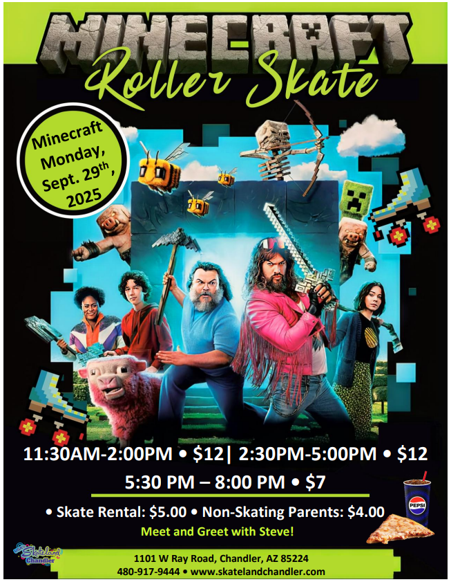 🟩🎮 Minecraft Monday at Skateland Chandler! 🎮🟩 Sep 29 🟩🎮 Minecraft Monday at Skateland Chandler! 🎮🟩 2:30 pm - 5:00 pm Recurring