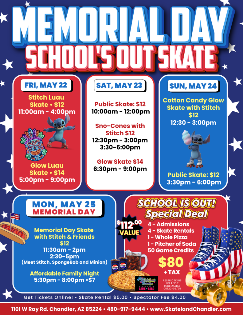 We have a fully stocked Roller Cafe full of family favorites, state-of-the-art sound systems, live DJs, and a huge arcade with awesome prizes. We are THE #1 place in Chandler for kids’ birthday parties, STEM Field Trips, fundraisers for your schools and groups, exercise, and family fun for all! Our mission is to make dreams come true by providing the perfect environment for people of all ages, organizations, schools, clubs and groups to have incredible parties for all types of events!