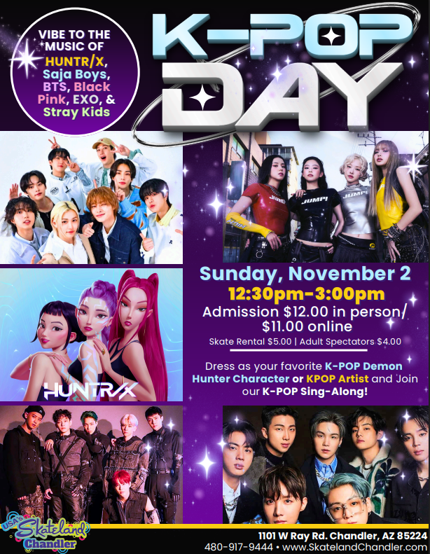 🎤✨ K-Pop Sing-Along Skate ✨🎤 Skateland Chandler • Sunday, Nov 2 • 12:30pm–3:00pm Warm up those vocal cords and test your range — it’s time to skate, sing, and shine! […]