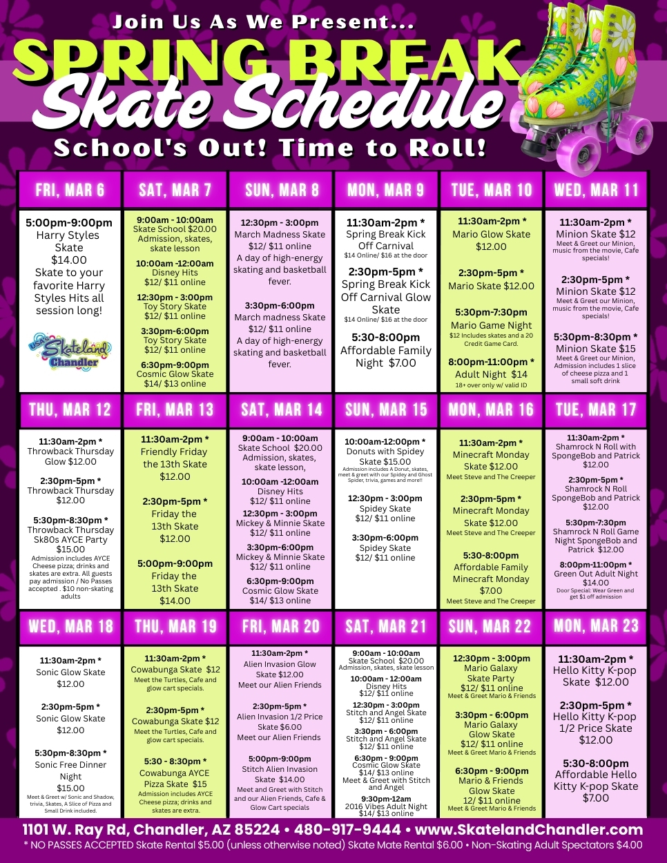 🛼 IMPORTANT ANNOUNCEMENT – TEMPORARY CLOSURE 🛼 Skateland Chandler will be CLOSED Monday, 04/06 through Wednesday, 04/08 for our annual skate floor maintenance & refinishing. 🚫 No public skating sessions🚫 […] |