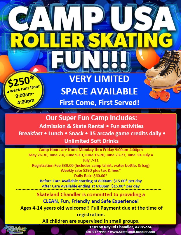 Roll into Summer at Kids Roller Skate Camp at Skateland Chandler! More information coming soon