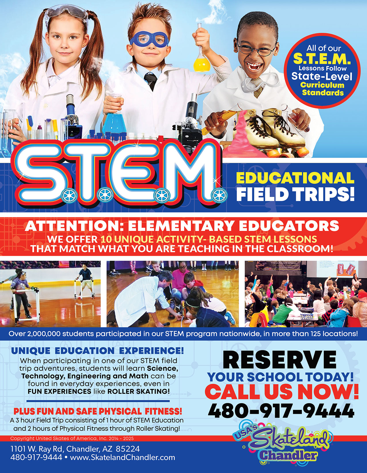 Introduce your students to a unique educational STEM field trip in Chandler, AZ at Skateland that gets them excited about learning! Students will learn how the concepts of science, technology, engineering, and math can be found in everyday experiences, even fun experiences like roller skating!